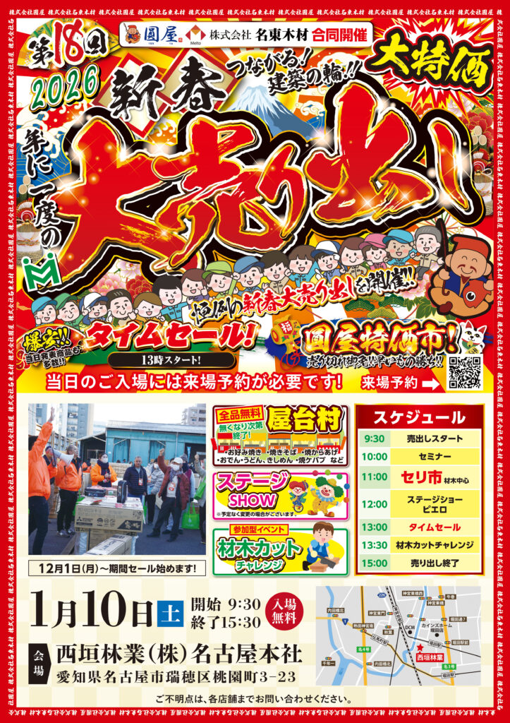 第18回「名東木材&圓屋合同新春大売出し」のご案内です。